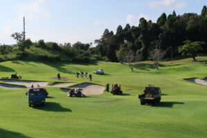 南国の自然の丘陵地に配された各ホールは、長い、短い、広い、狭い、打ち上げ、打ち下ろしの要素が織り混ざる設計となっている。